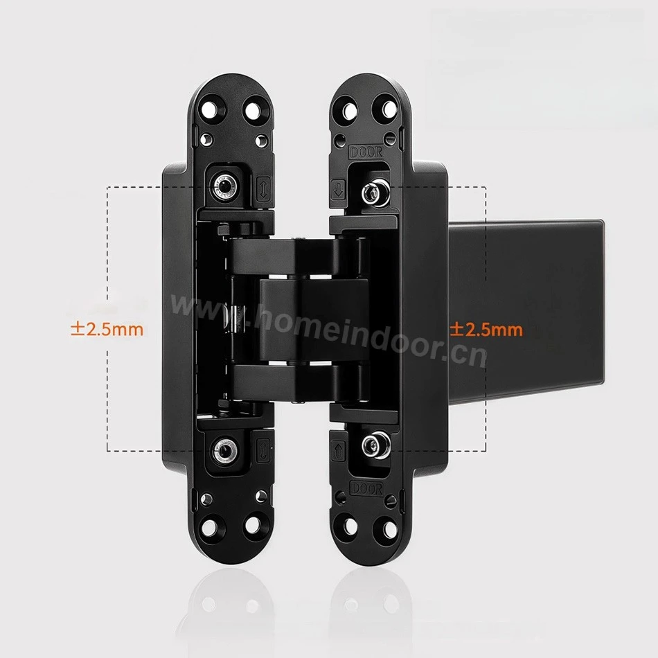 An aluminum alloy 3D adjustable self-close hydraulic invisible hinge is a specialized hardware component designed to provide smooth and controlled door operation, offering both aesthetic and functional advantages. Here's a breakdown of its features: