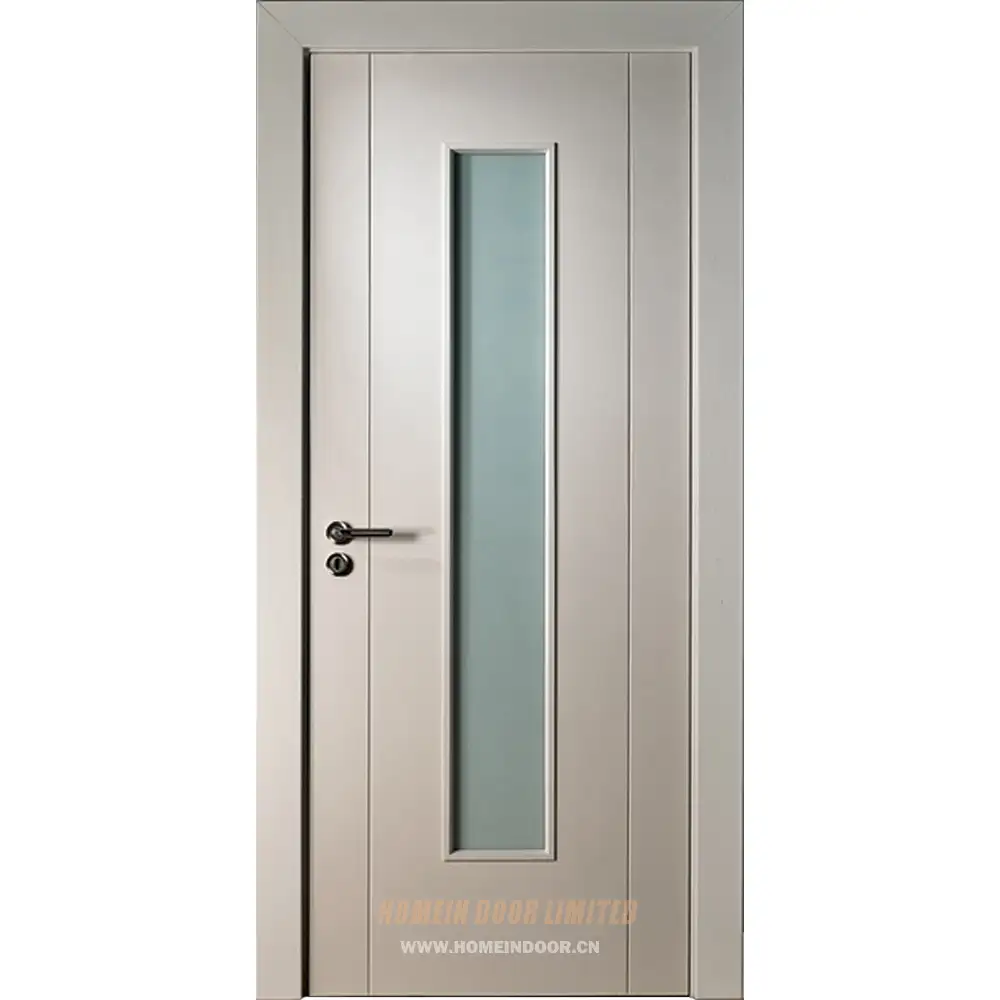 Glass Panel: Frosted or textured glass centered in the door for balanced design and privacy.