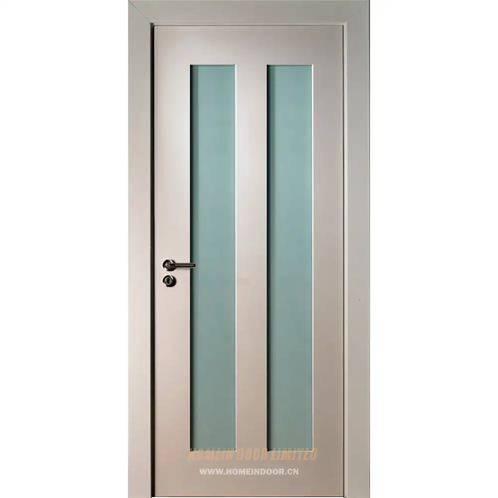 Pre:White wooden bathroom interior door with 2 glass panels