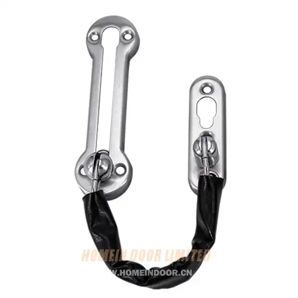 5 USDSolid metal swinging door guard offers the security of a bar with choice chrome-plated good looks. When bar is in security position