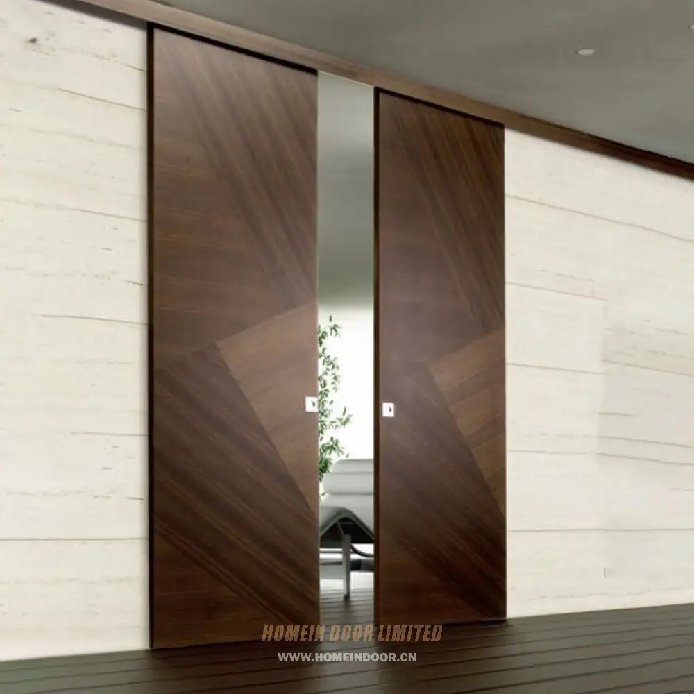 Pre:Interior closet flush wood surface mounted sliding door with rail covering