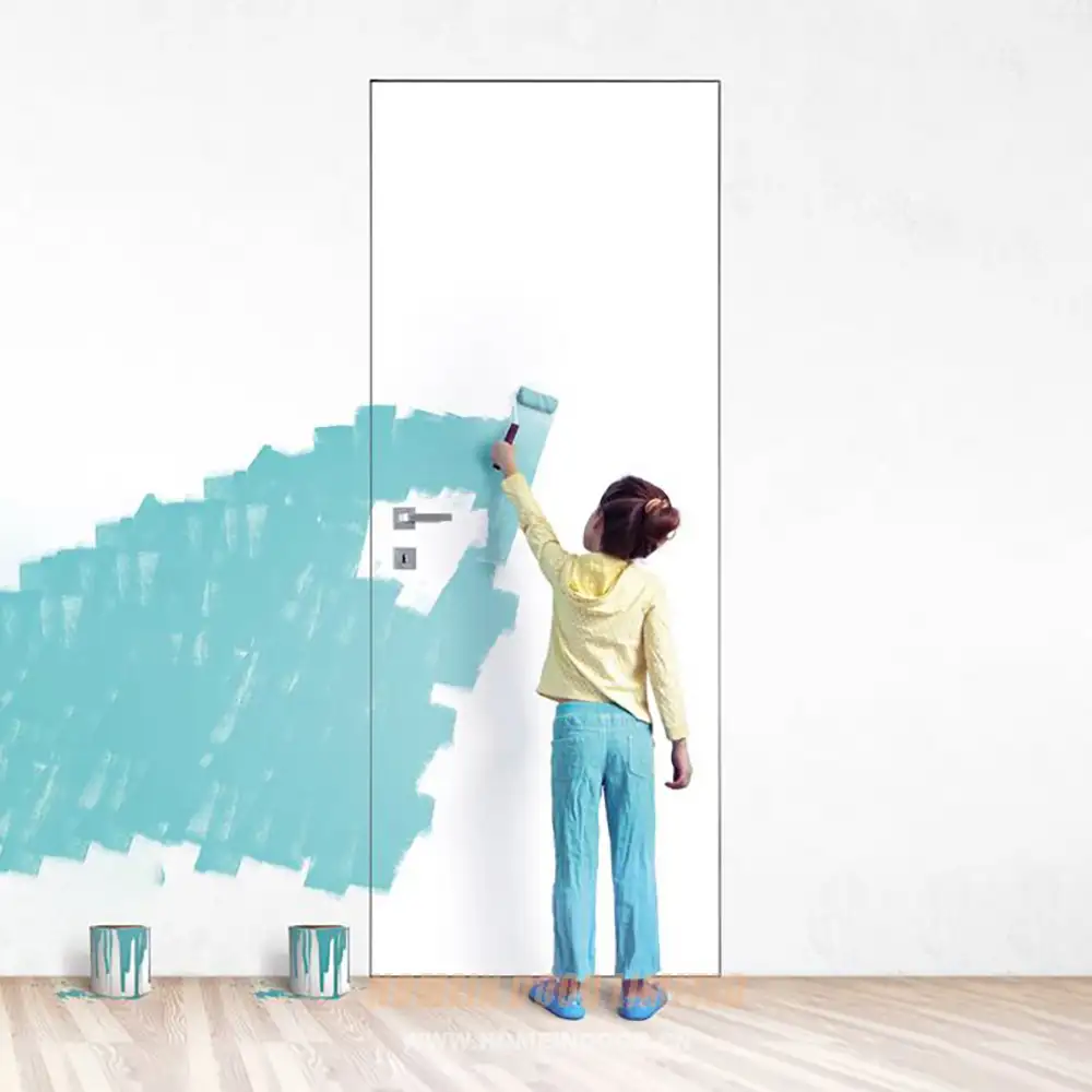 Instead of using pre-finished materials, the door surface is painted on-site together with the wall. This allows for perfect color and texture matching, whether using flat paint, specialty finishes, or even custom textures like Venetian plaster or microcement.