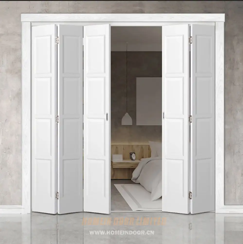 Pre:FLD15 house internal living room white painted riased panel wood folding door