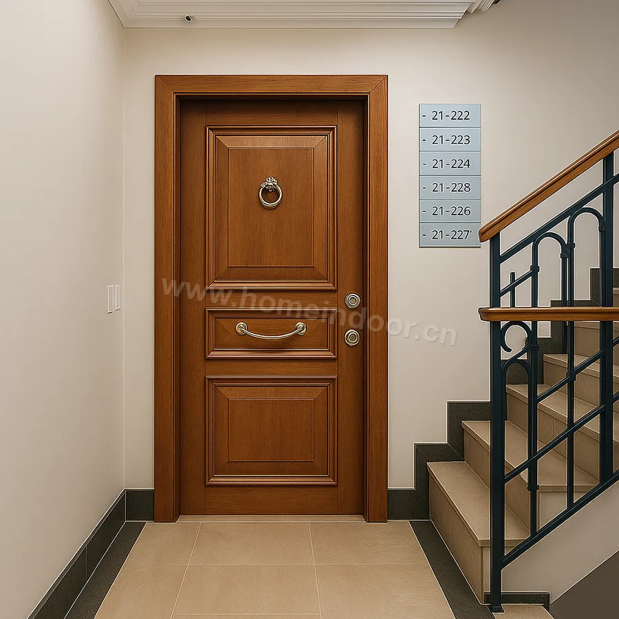 A steel-wood security door (often called a steel-wood armored door) is a high-performance door that combines the elegance of wood with the strength of steel. Designed primarily for residential use as a front door, main door, or entrance door, this door type has a wood face panel for an attractive aesthetic while featuring a steel inner structure that provides superior protection against break-ins. The steel frame and inner core give the door both its strength and resilience.