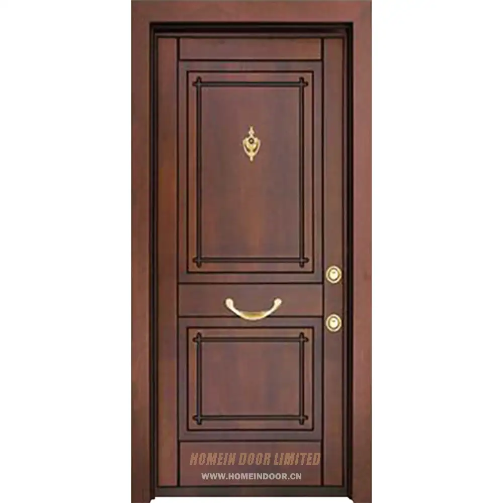Pre:AMD63 house exterior front brown walnut veneer painted 3 panel steel-wood armoured door