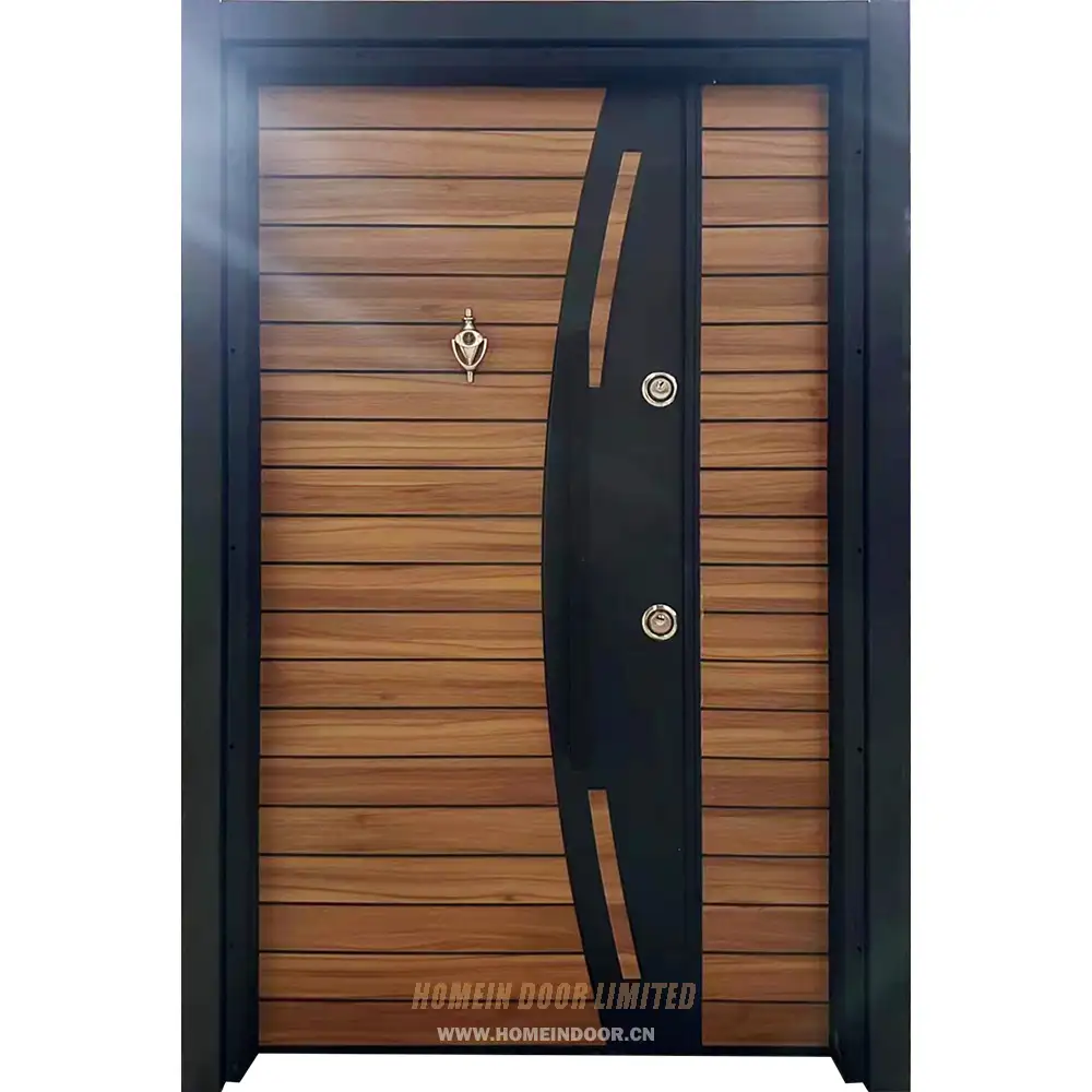 Pre:Residential external entry brown walnut veneer painted metal inlay steel-wood armored door