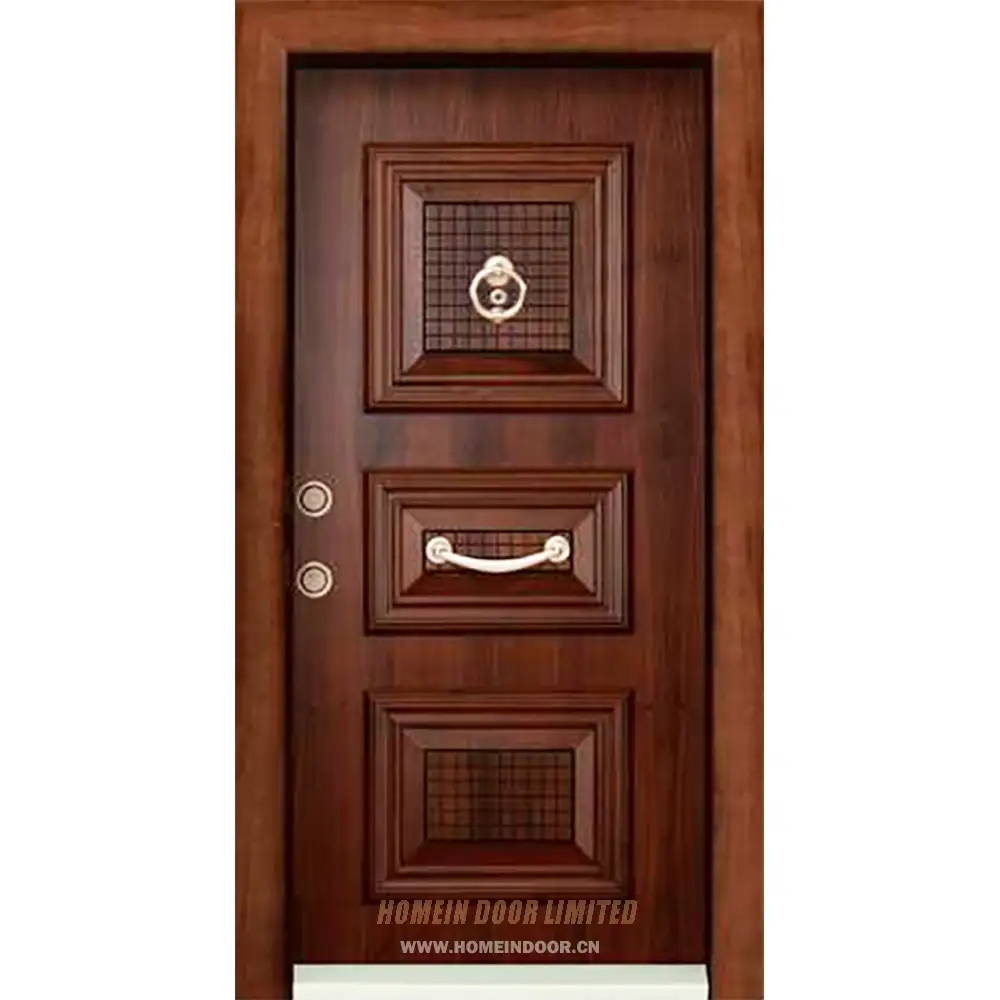 Next:Residential external entry brown Sapele veneer painted grooved steel-wood armour door