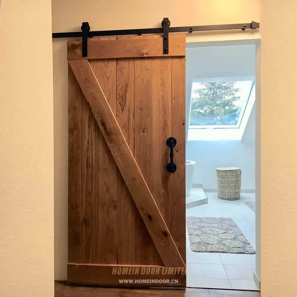 Pre:Solid wood interior laundry closet sliding barn door with frosted glass