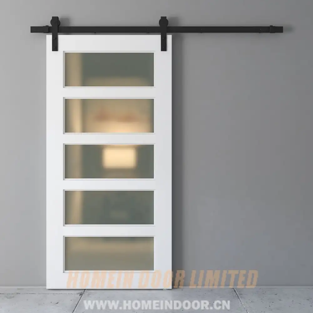 Pre:Wood white shaker style 4 lite frosted glass bathroom barn door