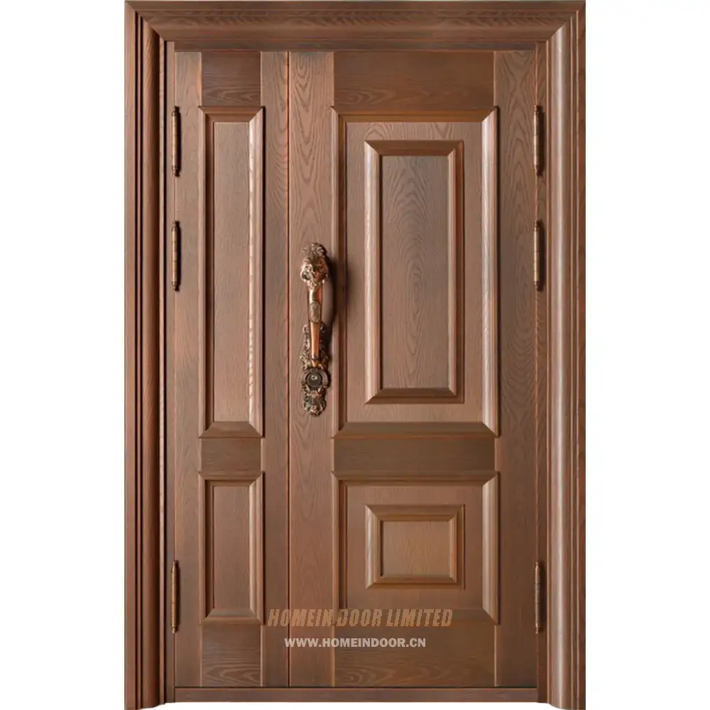 Pre:CPD03 villas exterior front entrance classic 2 panel armored security brass door