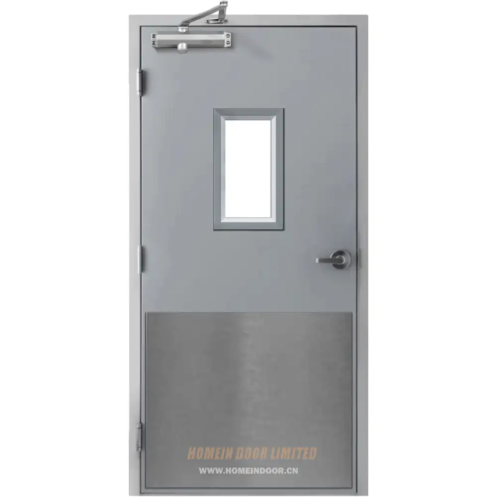 Our vision panel kit and fire rate glass can reach fireproof grade up to 2 hours; There are three optional glass for vision panel: 1-laminated glass 2- wired glass 3-schott glass; Vision panel kit with intumescent seals to prevent smoke spread, Size of glass vision panel Max up to 0.3 sqm.