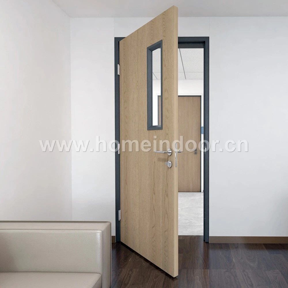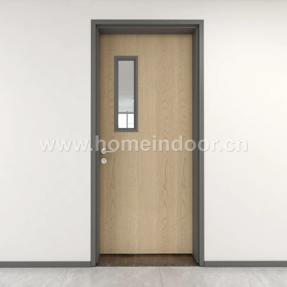 280 USDUL fireproof glass commercial wood doors with steel frames offer an advanced solution for combining safety, durability, and modern design. Certified by Underwriters Laboratories (UL), these doors are engineered to withstand fire exposure while allowing for the integration of vision panels made with fire-rated glass. This combination enhances visibility and natural light flow without compromising fire protection standards.