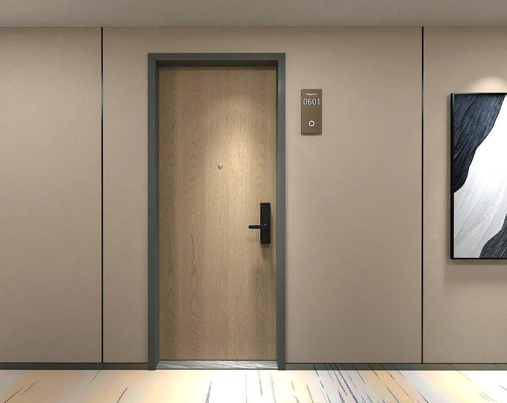 The aesthetics of a hotel room door play a crucial role in enhancing the room's overall ambiance. A door that complements the modern hotel interior design can set the tone for the guest's entire experience.