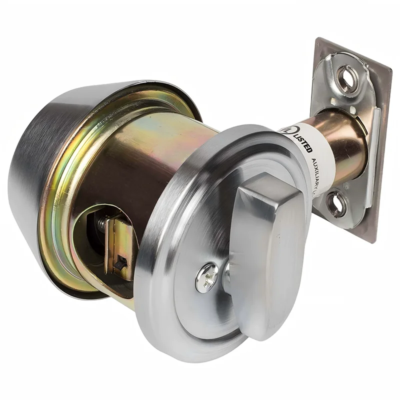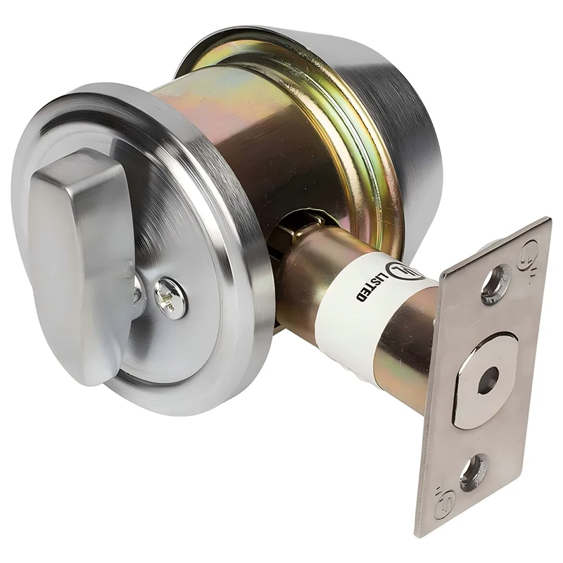 This deadbolt features a solid one-piece bolt mechanism that provides enhanced security against forced entry. The thumbturn on the interior side allows for quick and convenient manual locking and unlocking without a key, ensuring safe and easy exit during emergencies.