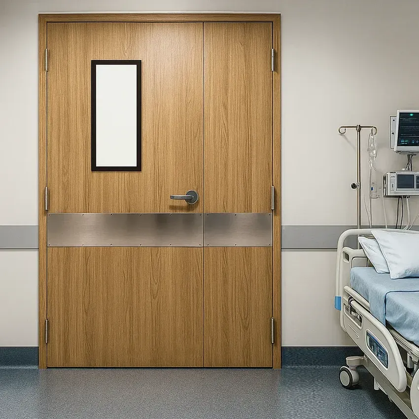 Constructed from galvanized steel, the door is resistant to moisture; The lightweight aluminum honeycomb core offers strength and stability while keeping the overall weight of the door manageable. This combination of materials ensures that the door can withstand the wear and tear typical of a hospital environment without compromising on performance or appearance.