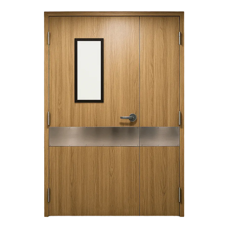 Durability and safety are also essential in the design of this door. The door comes with a stainless steel stretcher plate, which provides additional protection against scratches and impacts from hospital beds or wheelchairs. This ensures that the door remains in excellent condition, even with frequent use in a busy healthcare setting.
