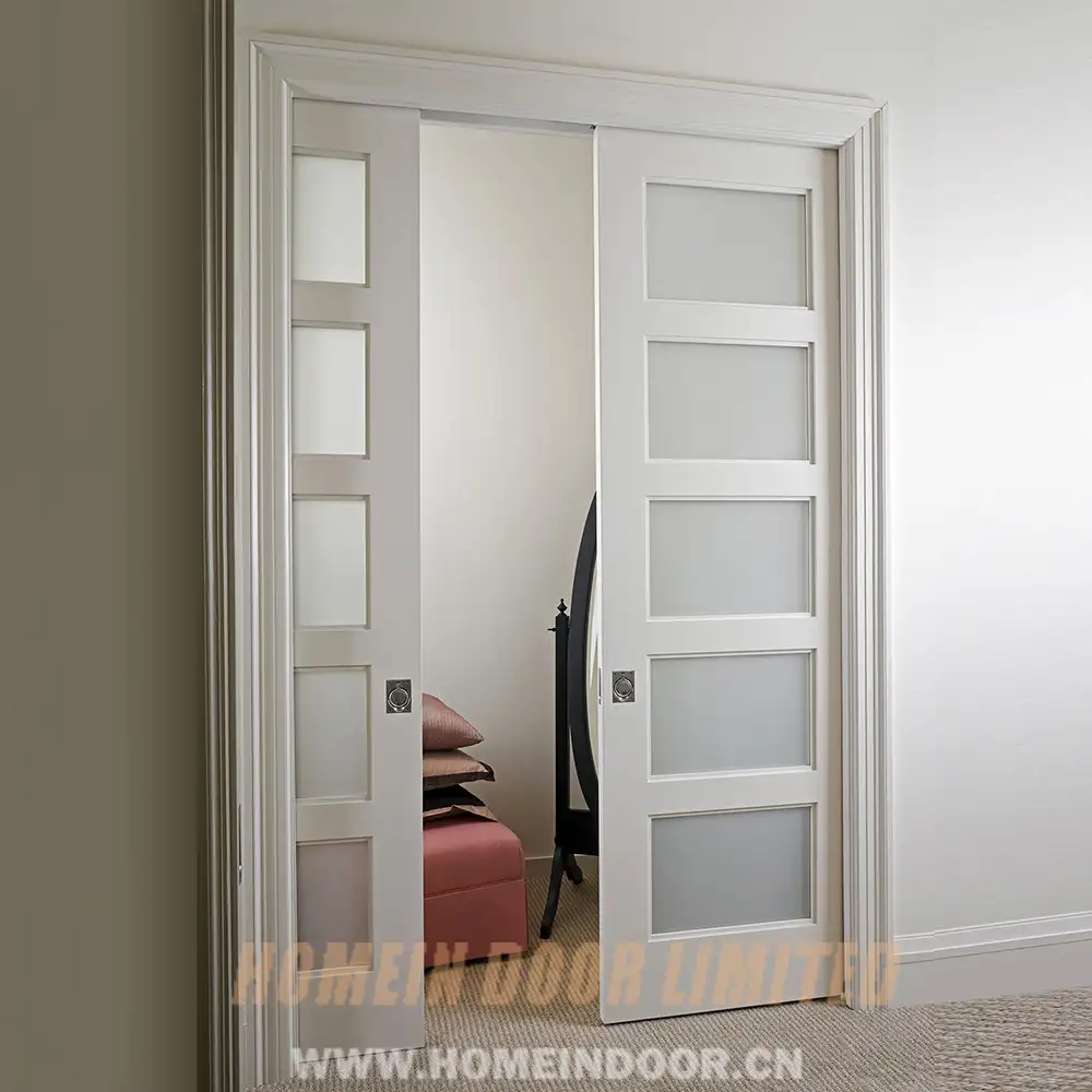 Pre:Internal full glass panel wooden white pocket sliding door
