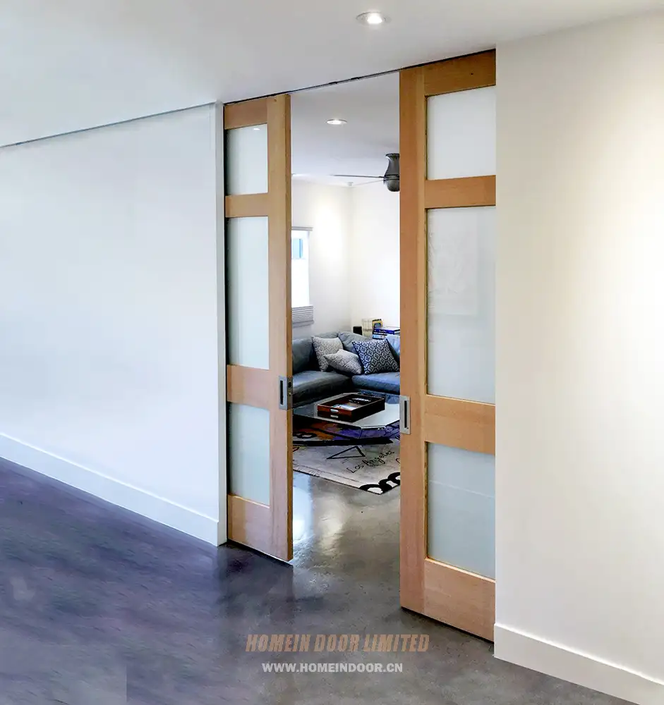 Next:internal wooden 5 panel sliding glass door hidden in wall