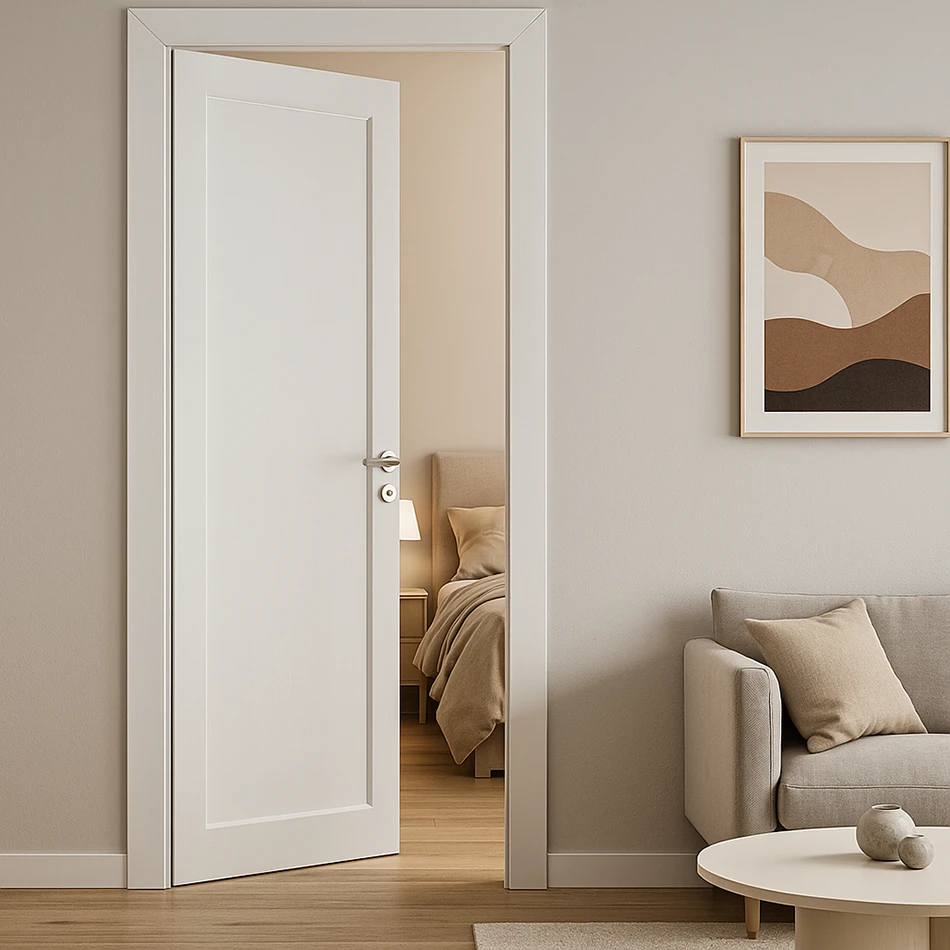 The door is finished in a bright, white color, which not only adds a fresh, airy feel but also reflects light, helping to brighten rooms with limited natural light or spaces that need a little extra brightness. The white finish enhances the sense of openness in any room, making it an ideal choice for spaces with small windows or poor natural lighting. Its neutral tone also effortlessly matches various décor themes, making it easy to integrate into any design.