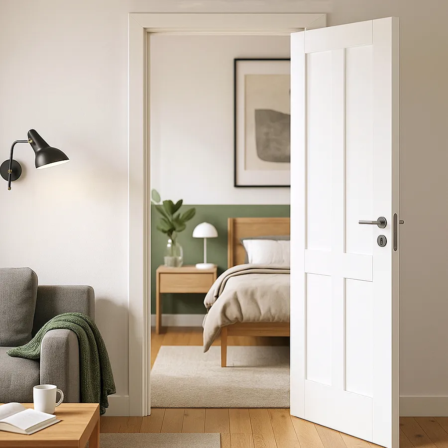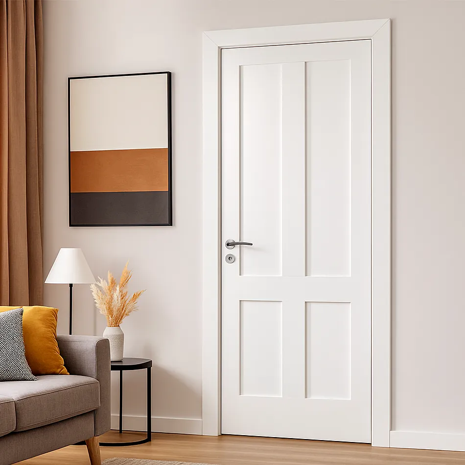 The 4 Flat Panel Internal Door is an elegant and practical choice for any interior space, particularly bedrooms or living areas. Known for its classic 4 flat panel design, often referred to as a 4 shaker panel, this door seamlessly blends traditional craftsmanship with modern aesthetics. The design features four flat, rectangular panels that create clean lines and a sleek, minimalist look. This simplicity in design adds a sense of understated sophistication, making it a perfect fit for a variety of interior styles.