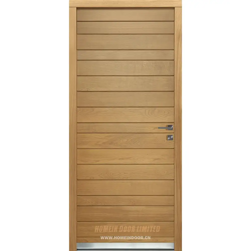 Pre:EMW14 house external entry contemporary brown varnish battens solid mohagany door