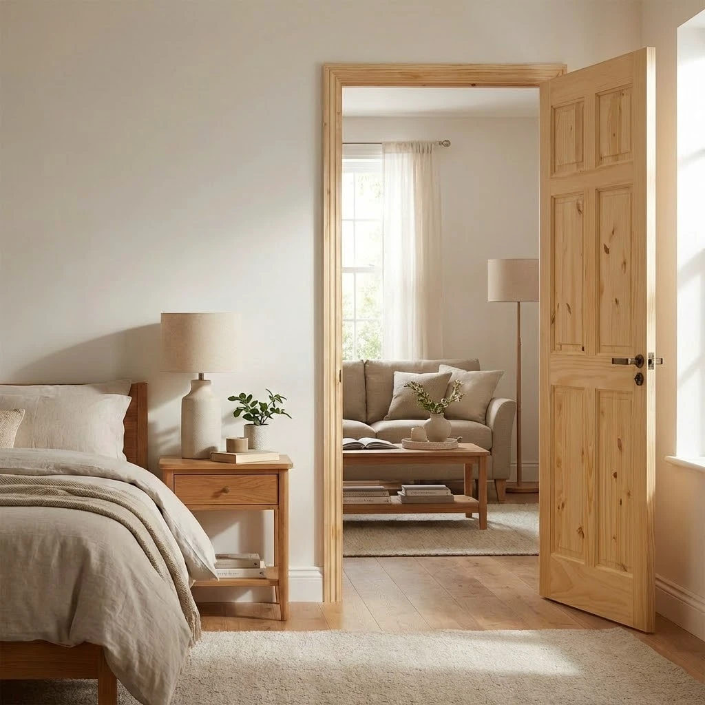The Classic 6-Panel Knotty Pine Solid Wood Interior Door blends timeless craftsmanship with rustic charm, offering both aesthetic appeal and functional durability. Designed with a traditional 6-panel configuration, this door is crafted from high-quality knotty pine wood that highlights its natural grain and unique texture. The door features a stile and rail construction, ensuring stability and strength, while the smooth finish is achieved using water-based paint, which provides a clean, eco-friendly coating. This door is an excellent choice for adding warmth and character to interior spaces such as bedrooms, where it enhances both style and privacy.