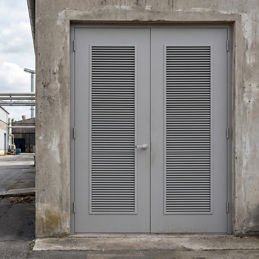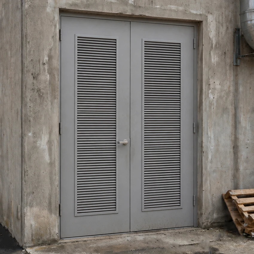 Pre:commerical internal electrical room double louvered commercial hollow metal door