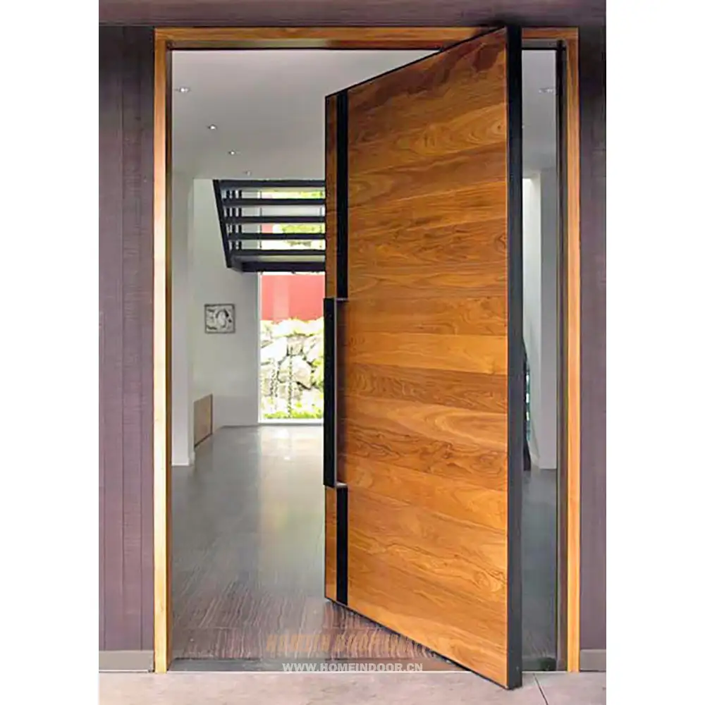 Next:Residential exterior Solid walnut wood pivot front door with glass